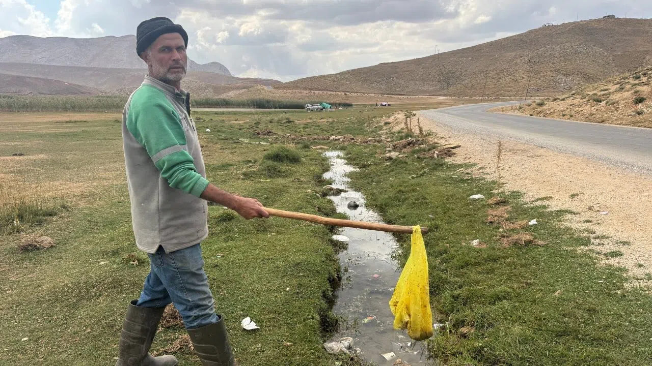 "Karavancılar, piknikçiler herkes burada. Gördüğünüz gibi hayvan suladığımız çeşmenin önü bile naylonlarla poşetlerle dolu. Bu poşetler bizden fazla yaşıyorlar. Neden bunları muhafaza etmiyorlar da çevreye atıyorlar bunu anlamış değilim. Göle atılan pisliklerden hayvanlarımız su içmiyor. Kendi imkanlarımız ile çeşme yapıp hayvanlar su içsin diye arık yaptırdık. Her yer plastik tabak, plaksitk bardak ve poşetlerle dolu. Hayvanların otlayacağı yerlerde taşlarla çevrilip onlarca ateşler yakılmış, Doğayı bu kadar katletmeye gerek var mı. Çöp atılacak çukurlar var. Bu çukurlara çöplerini atsalar doğa katl olmayacak. Ben bu çukurlarda biriken çöpleri zaman zaman yakıyorum. Bu çevre katliamına dur demeli. Bu bölge bir mera alanı iken artık piknik alanı, kamp alanı gibi oldu. İnsanlar sorumluluklarını bilmeli. Doğayı sevmeli" diye tepkilerini dile getirdi.