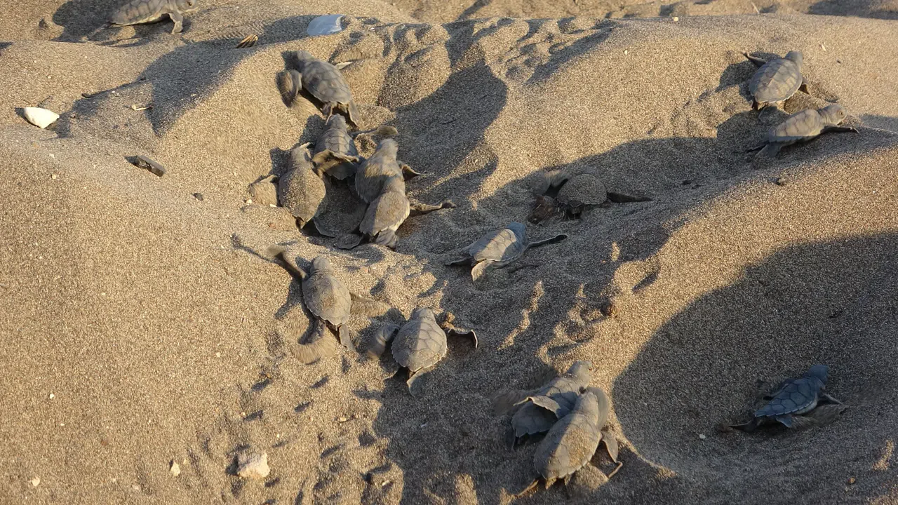 Mersin Üniversitesi Deniz Kaplumbağaları Uygulama ve Araştırma Merkezi tarafından yürütülen çalışmalar kapsamında Mezitli ilçesindeki Davultepe sahilinde ilk yavruların yuvalardan çıkarak denize ulaştığı belirlendi.