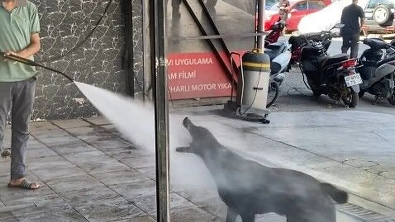 Muratpaşa ilçesi Cumhuriyet Mahallesi'nde yer alan eski Sanayi Sitesi'nde esnafın maskotu haline gelen köpek, sıcaklardan serinlemenin yolunu oto yıkamacıda buldu. Her iki saatte bir oto yıkamacıya gelen köpek, işletme çalışanları tarafından tutulan tazyikli su ile serinliyor. Serinlemenin yanı sıra suyu da içen köpek görenleri tebessüm ettiriyor.