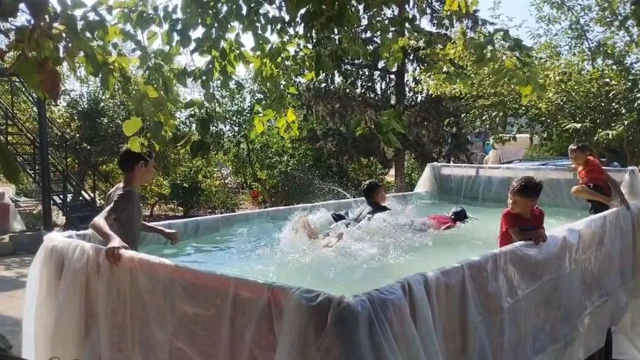 Baba Eroğlu, "Hava aşırı sıcak olduğu için deniz de çok sıcaktı. Bu nedenle çocuklar denize girmek istemedi. Ben de römorku havuza çevirdim. Çocuklar bu havuzda yüzüp serinliyor. Hava çok sıcak" dedi.