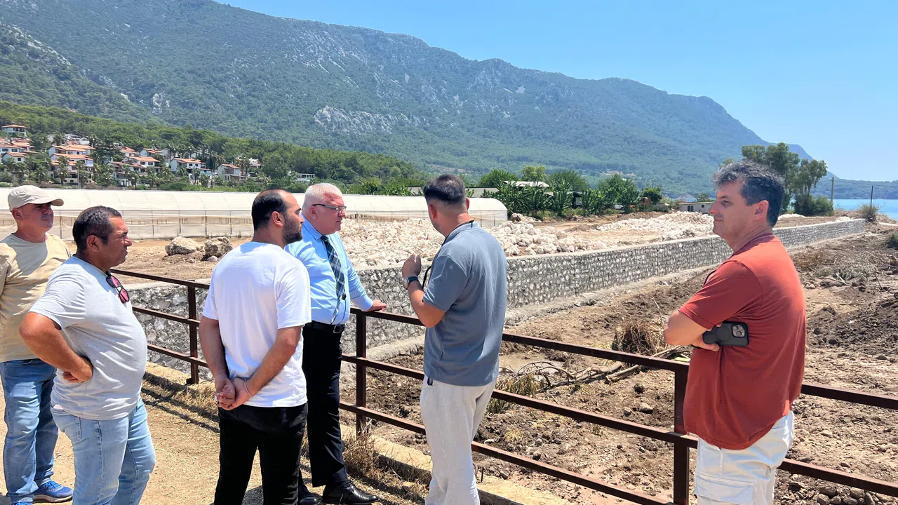 Kumluca Kaymakamı Bahadır Güneş, ilçeye bağlı Mavikent Mahallesi Karaöz mevkiindeki Karaöz deresi üzerinde yürütülen ıslah çalışmalarını yerinde inceledi.