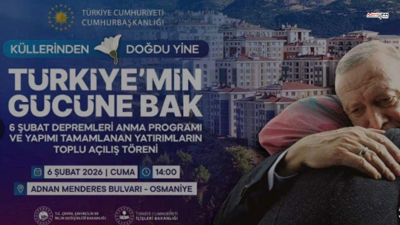 Depremin izlerini en ağır hisseden şehirlerden biri olan Osmaniye’de, anma ve toplu açılış programları düzenlenecek. Program kapsamında, depremde hayatını kaybeden vatandaşlar dualarla anılacak, yapımı tamamlanan projeler kamuoyuna tanıtılacak. Cumhurbaşkanı Erdoğan ve Devlet Bahçeli’nin, tamamlanan yatırımların toplu açılışını birlikte gerçekleştirmesi bekleniyor.