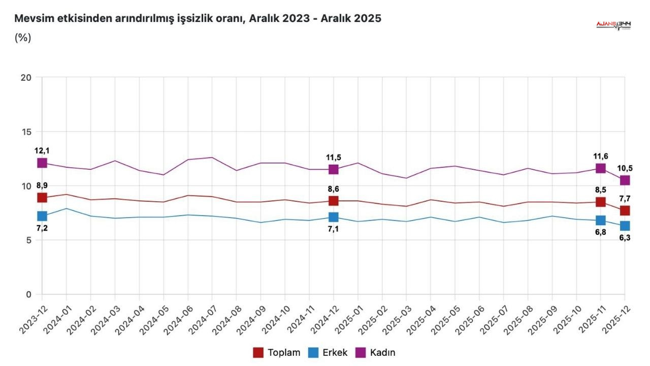 Paylaşımda genç ve kadın istihdamına ilişkin veriler de öne çıktı. Yılmaz, gençlerde işsizliğin geçen yılın aynı ayına göre 1,9 puan azalarak yüzde 14,1’e, kadınlarda ise 1 puanlık iyileşmeyle yüzde 10,5’e gerilediğini aktardı. Bu gelişmenin, işgücü piyasasında kapsayıcı iyileşmenin göstergesi olduğu belirtildi.