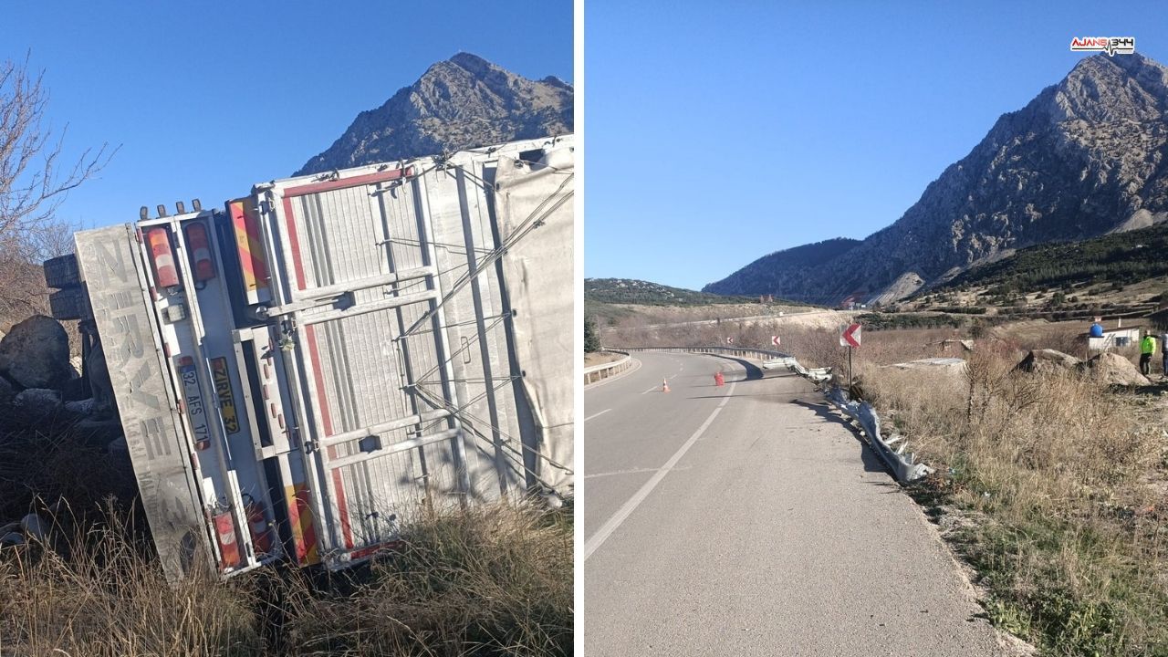Kamyon Bariyerlere Çarpıp Şarampole Yuvarlandı