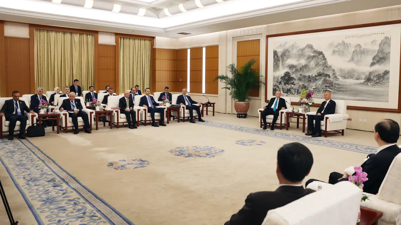 Çin Devlet Başkanı Şi Cinping ile dün yaptıkları görüşmeyi anımsatan Cumhurbaşkanı Erdoğan, "Dünkü görüşmemizde Devlet Başkanı Sayın Şi'ye ülkenizle her alanda iş birliğini geliştirme kararlılığımızı vurguladık. Bu iş birliğini, Birleşmiş Milletler, G20 ve BRICS gibi platformlarda da güçlendirmeyi arzu ediyoruz. Şanghay İşbirliği Teşkilatı ile ilişkilerimizin ilerletilmesine olan desteğinizin sürmesini bekliyoruz. 50 milyar dolara yaklaşan ticaret hacmimizi dengeli ve sürdürülebilir şekilde arttırmak istiyoruz." ifadelerini kullandı.