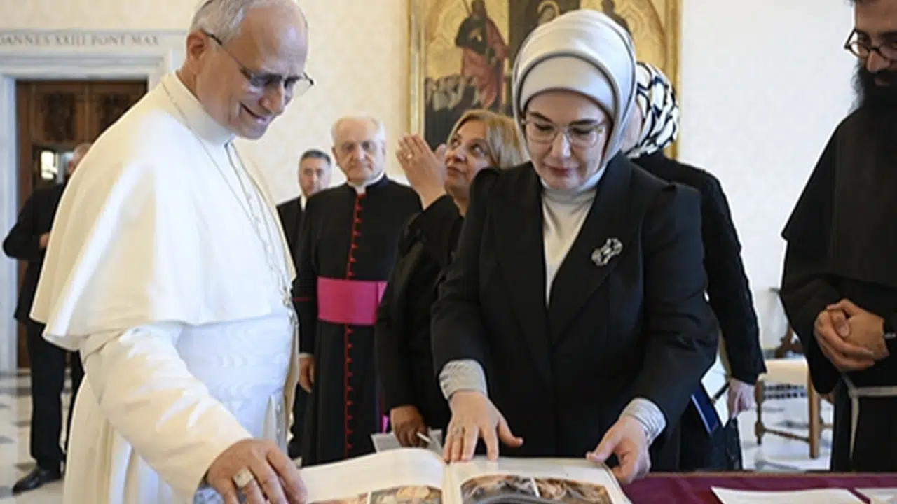 Cumhurbaşkanı Recep Tayyip Erdoğan’ın eşi Emine Erdoğan, Vatikan’da Papalık Sosyal Bilimler Enstitüsü’nde düzenlenen “Kardeşlik Temelli Ekonomi: Etik Çoktaraflılık” etkinliğinde konuşmak üzere bulunduğu sırada, Katoliklerin ruhani lideri ve Vatikan Devlet Başkanı Papa 14. Leo ile bir araya geldi.