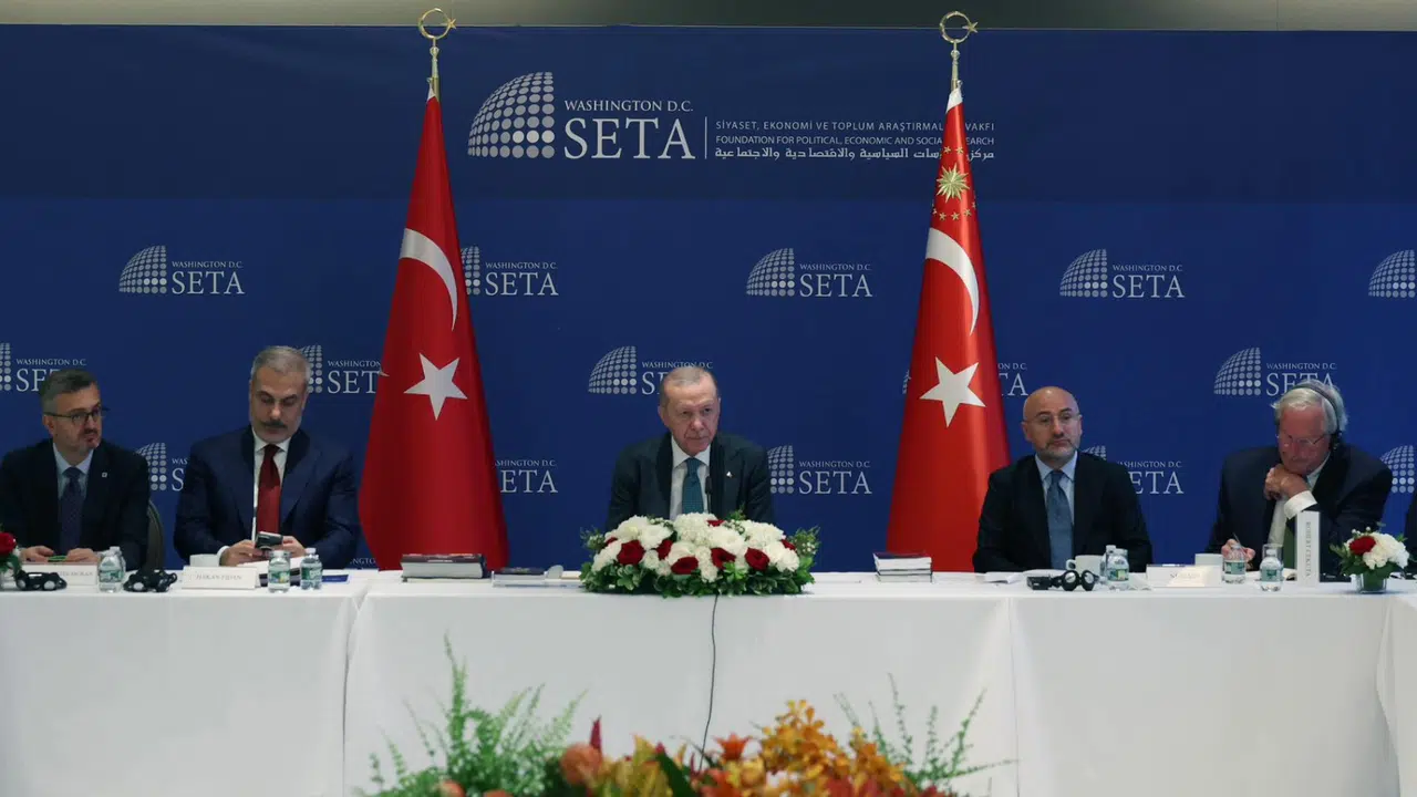 Cumhurbaşkanı Recep Tayyip Erdoğan, Birleşmiş Milletler 80'inci Genel Kurulu dolayısıyla bulunduğu New York'ta, Türkevi'nde ABD'li düşünce kuruluşu temsilcileriyle Siyaset, Ekonomi ve Toplum Araştırmaları Vakfı (SETA) eş güdümünde düzenlenen toplantıya katıldı.