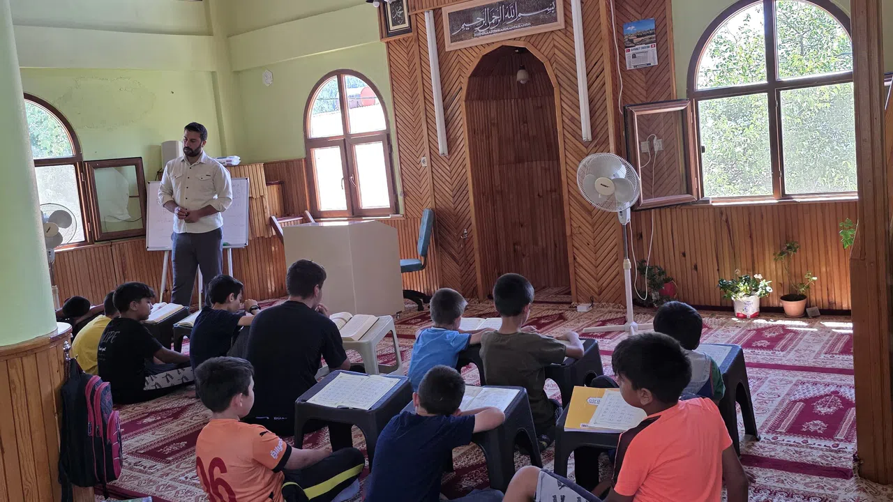 Yaz tatilinde camiye gelen çocukların hem ibadetlerini yerine getirmeleri hem de Kur'an-ı Kerim eğitimi almaları için büyük emek veren genç imam, her ders sonunda başarılı olan öğrencileri oyuncak ve çeşitli hediyelerle ödüllendiriyor.