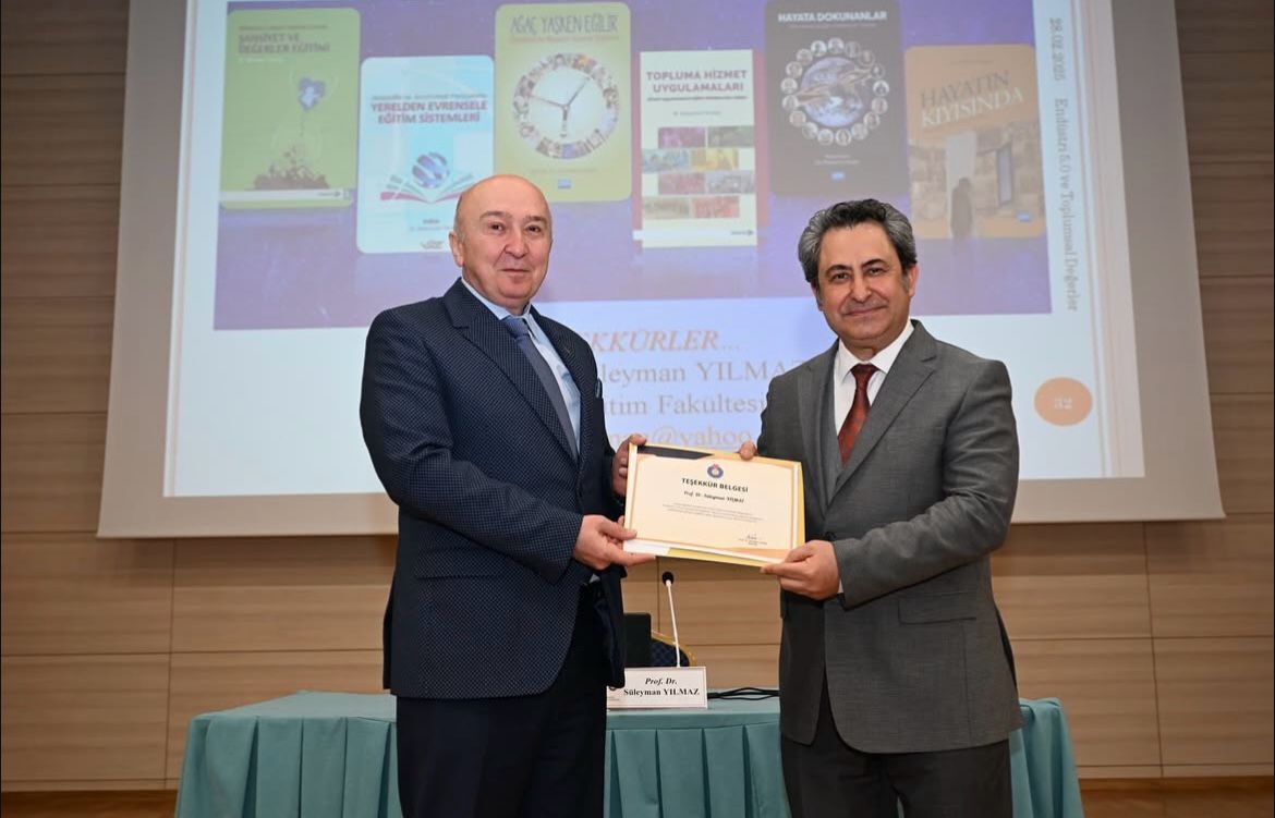 Konferansın sonunda Prof. Dr. Süleyman Yılmaz'a teşekkür belgesi takdim edilirken, etkinlik toplu fotoğraf çekimiyle sona erdi.