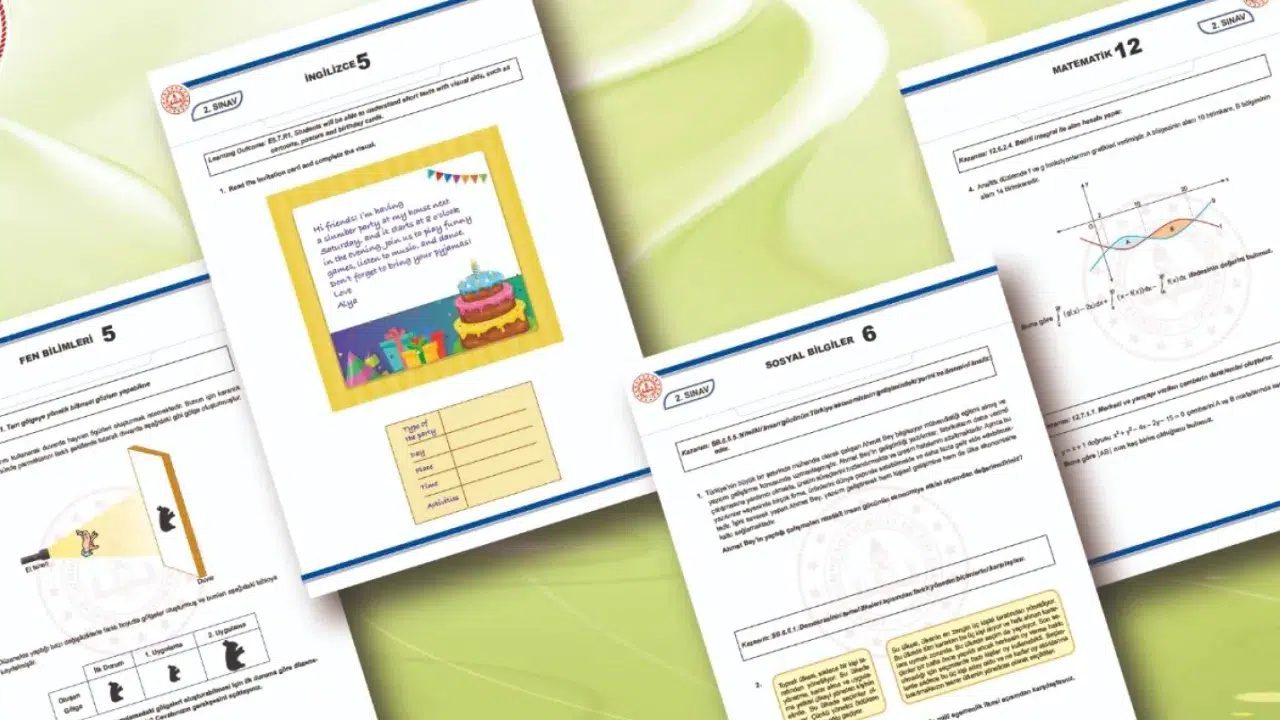 MEB yayımlanan örnek soru kitapçıklarında, 2024-2025 eğitim öğretim yılı 2. dönem 2. yazılı sınavları için konu soru dağılım tablolarında yer alan senaryolardaki bazı kazanım/öğrenme çıktılarına yönelik örnek sorulara yer verdi.