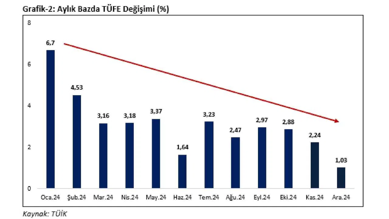 TÜFE’deki değişimin 2024 yılı Aralık ayında bir önceki aya göre yüzde 1,03 olarak gerçekleştiğini dile getiren Bolat, şunları kaydetti:
