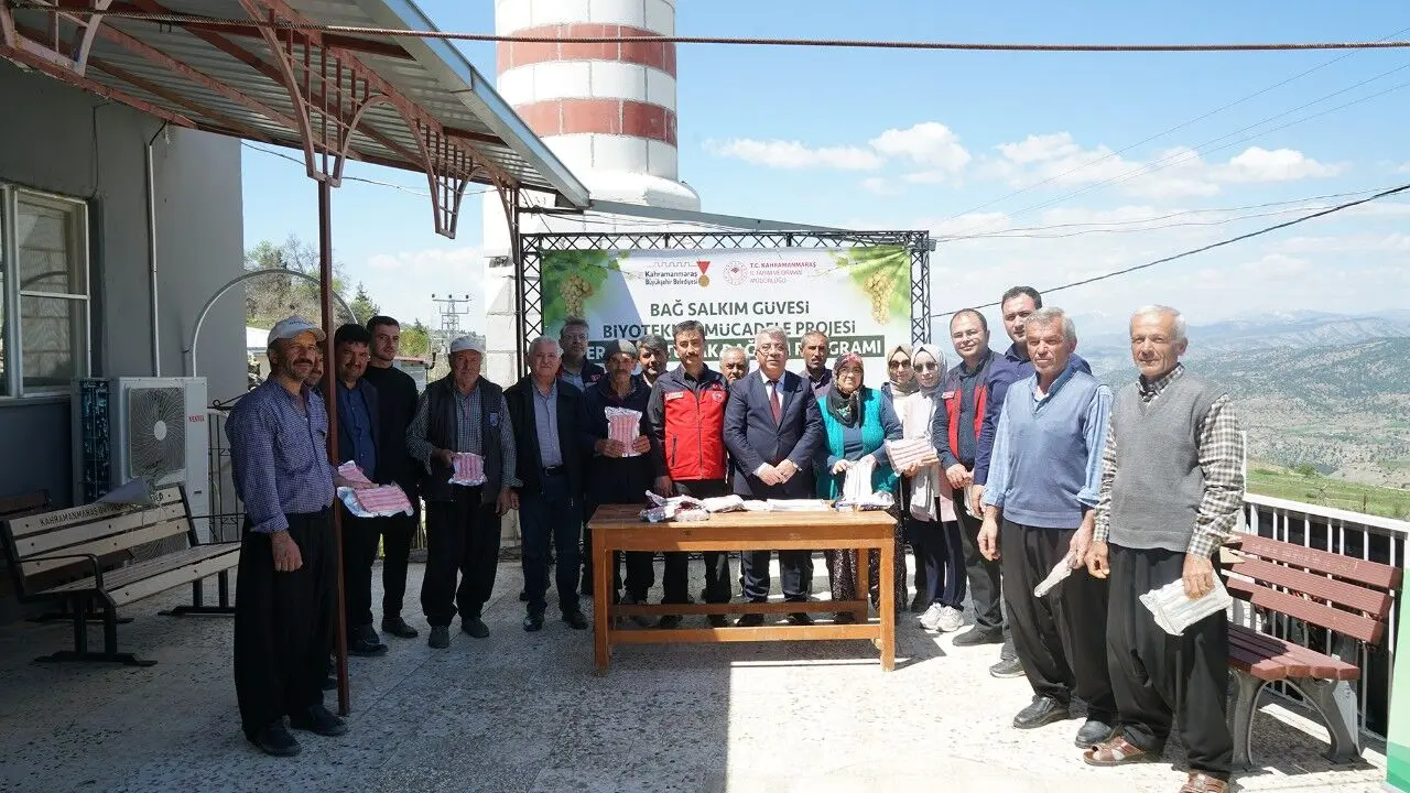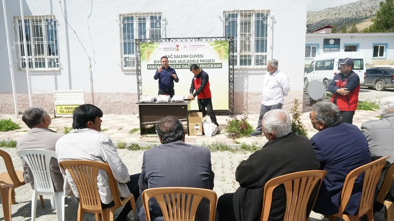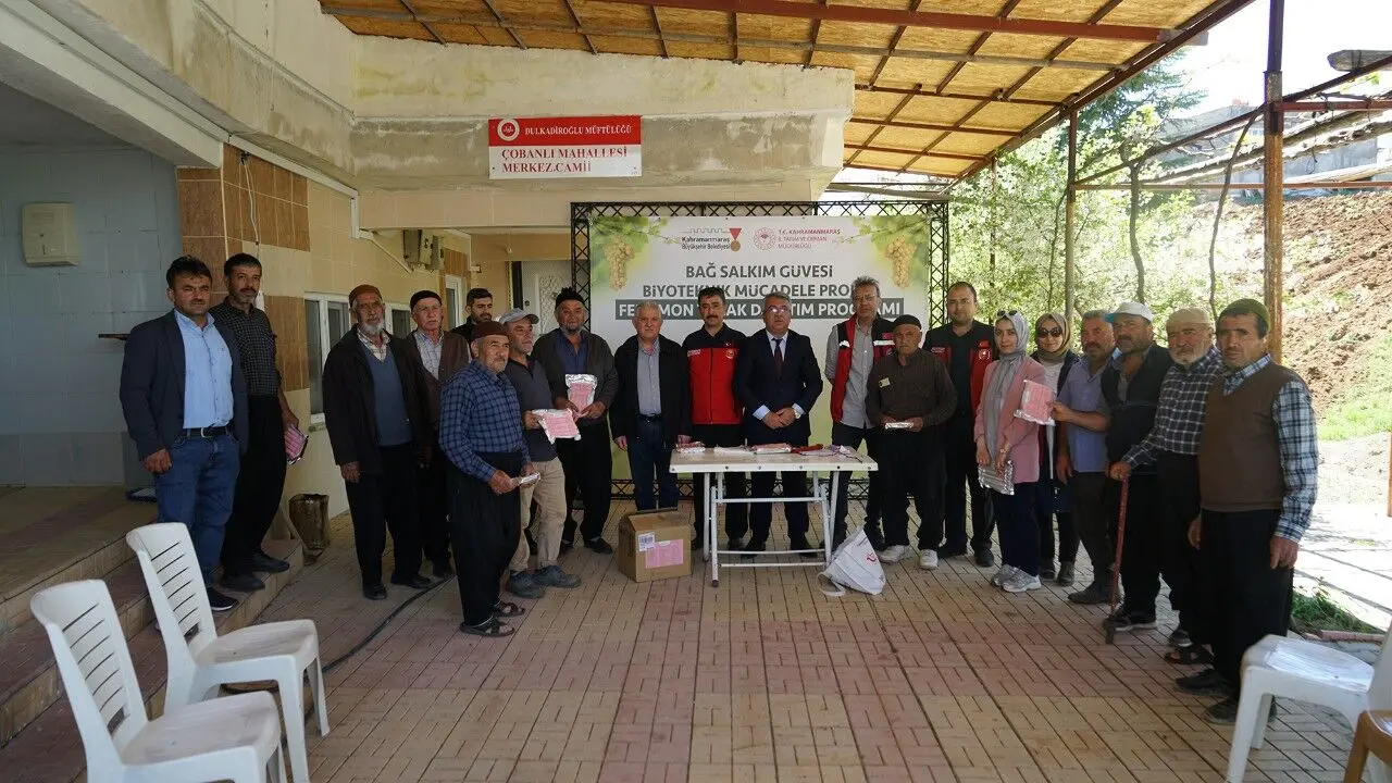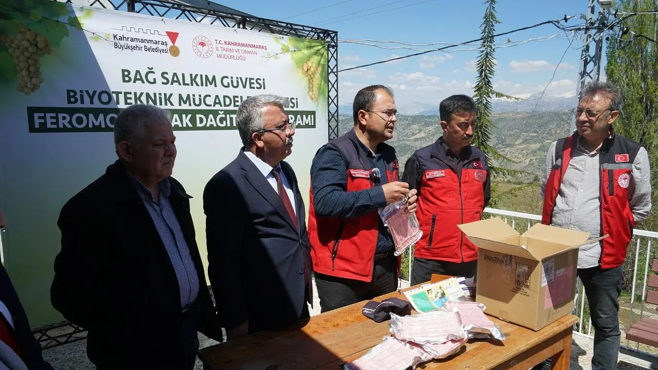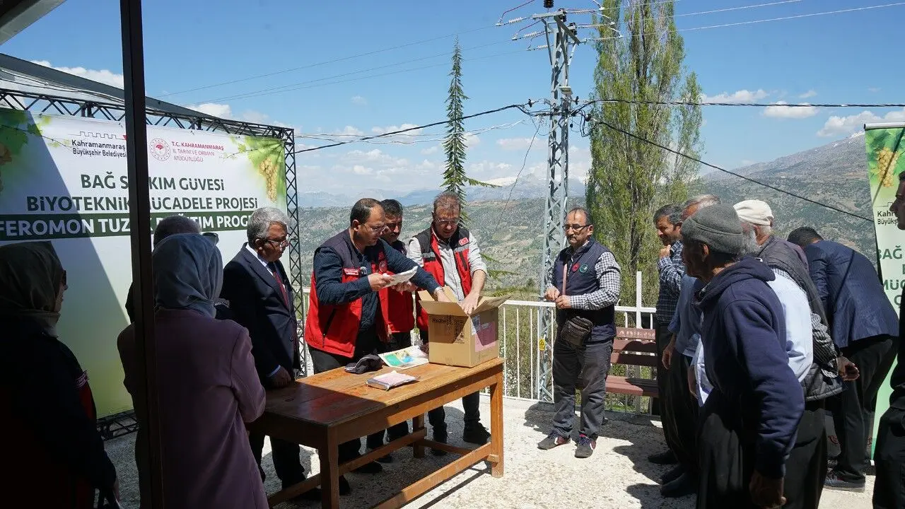 Kahramanmaraş Büyükşehir Belediyesi, tarımsal üretimi güçlendirmek ve çiftçilerin gelirini artırmak amacıyla hayata geçirdiği destek projelerine bir yenisini daha ekledi. Coğrafi tescilli Kabarcık Üzümü’nün anavatanı Bertiz bölgesinde başlatılan yeni uygulama kapsamında, üzüm bağlarında verim kaybına neden olan bağ güvesine karşı üreticilere feromon tuzak desteği sağlanıyor. Büyükşehir Belediyesi ile Tarım ve Orman İl Müdürlüğü iş birliğinde yürütülen proje, Budaklı, Çobanlı ve Baydemirli mahallelerinde toplam 110 üreticiyi kapsıyor. Proje kapsamında dağıtılan feromon tuzaklarla, bağlara zarar veren salkım güvesinin kimyasal ilaç kullanılmadan, biyoteknik yöntemlerle kontrol altına alınması hedefleniyor. Böylece hem çevre dostu üretim teşvik ediliyor hem de Kabarcık Üzümü’nün doğal yapısı korunarak üretim hacminin artırılması amaçlanıyor.