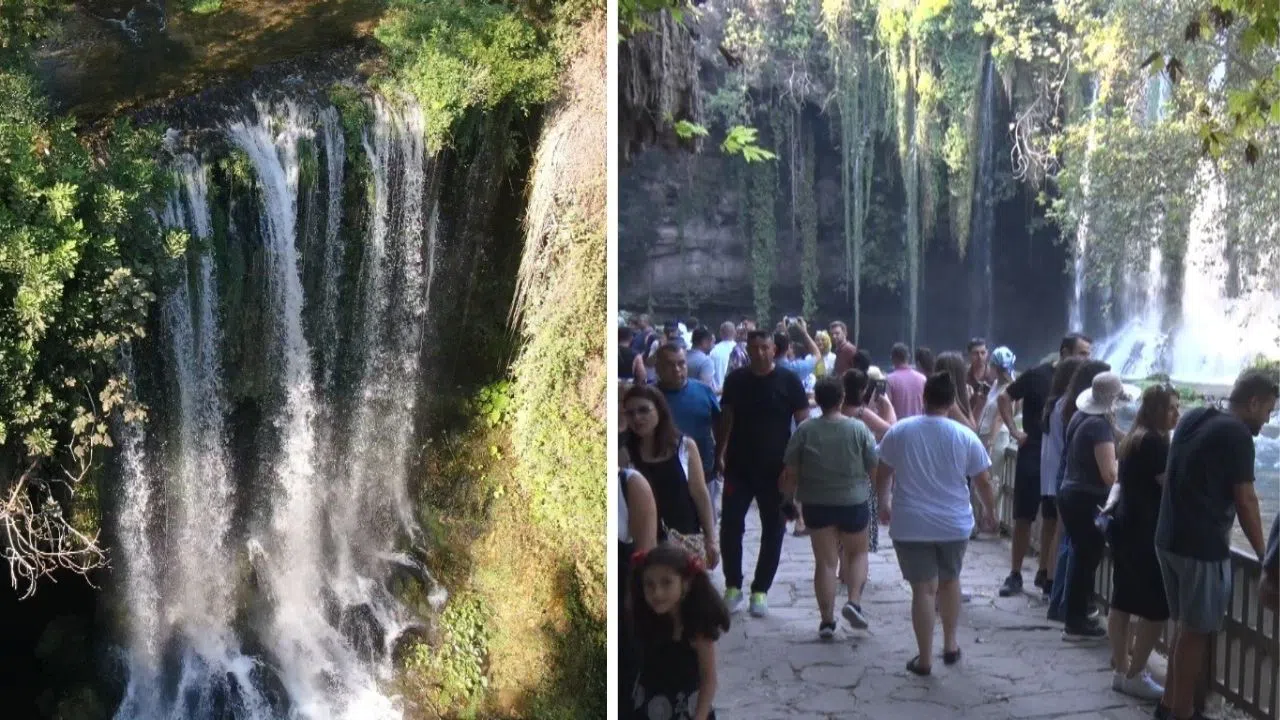 Kent merkezine yaklaşık 10 kilometre uzaklıkta bulunan ve “cennetten bir köşe” olarak tanımlanan Düden Şelalesi, 38 metre yükseklikten akan suyu, gölgelik yürüyüş yolları ve asırlık ağaçlarıyla büyük ilgi gördü. Ziyaretçiler, şelalenin alt kısmında bulunan yosunlu mağarada su sesleri eşliğinde keyifli anlar yaşarken, yoğun ilgi nedeniyle girişlerde zaman zaman uzun kuyruklar oluştu.