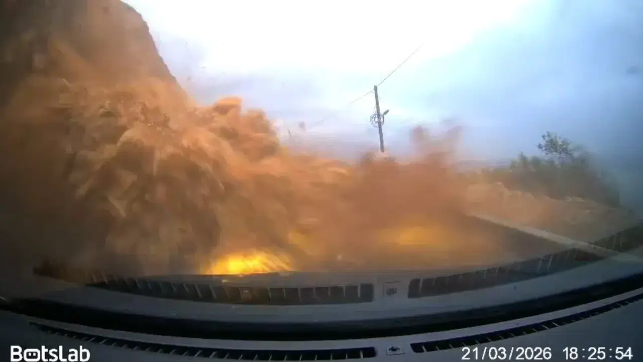 Olayın en çarpıcı yönü ise araç kamerasına yansıyan görüntüler oldu. Kayıtlarda, otomobilin ilerlediği sırada aniden yamaçtan kopan kütlenin aracı tamamen sardığı görüldü.