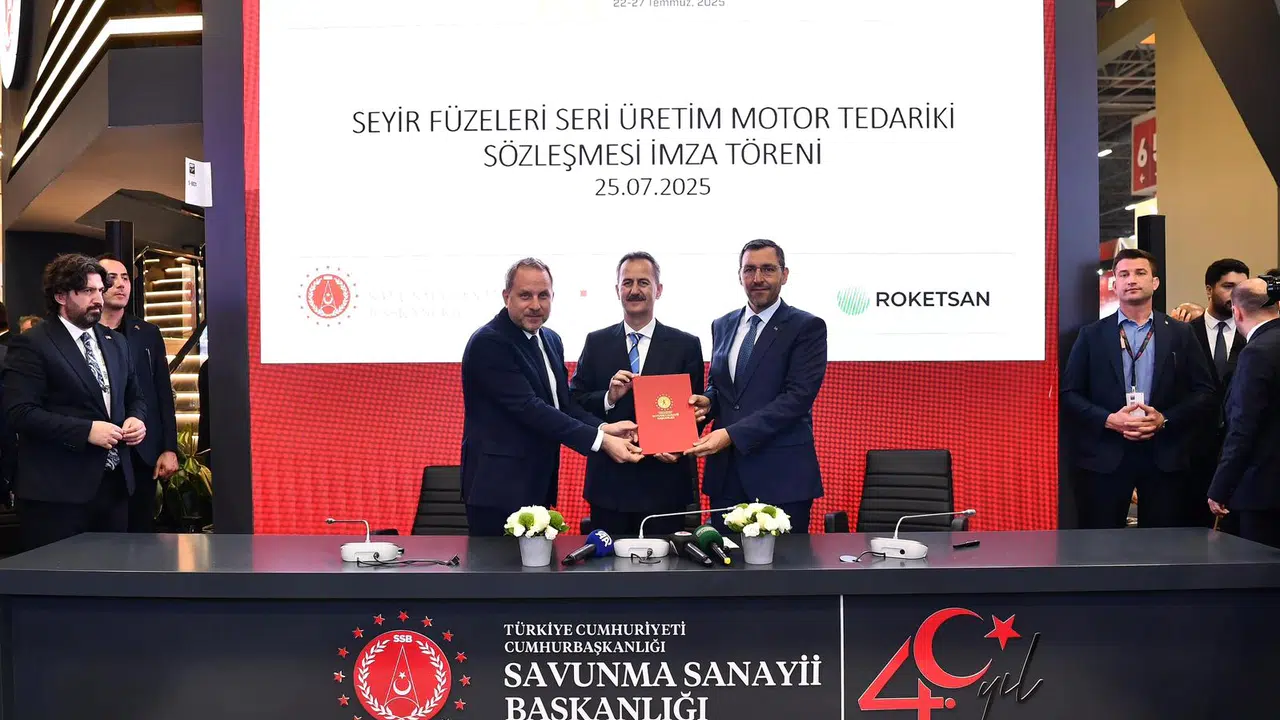 IDEF’25’te Cumhurbaşkanlığı Savunma Sanayii Başkanlığı (SSB), Roketsan ve Kale Jet Motorları arasında imzalanan yeni sözleşme ile Türk mühendislerin imzasını taşıyan seyir füzeleri, yerli motorlar ile donatılacak. SSB Başkanı Prof. Dr. Haluk Görgün’ün de katılımıyla düzenlenen törende, Roketsan Genel Müdürü Murat İkinci ve Kale Jet Motorları Yönetim Kurulu Başkanı ve Kale Grubu Yönetim Kurulu Başkan Vekili Osman Okyay tarafından imzalanan “Seyir Füzeleri Seri Üretim Motor Tedariki İş Birliği Protokolü” ile Roketsan’ın seyir füzelerindeki en önemli parçalardan biri artık yerli ve milli imkanlarla karşılanacak.