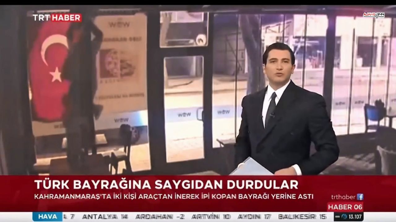 Kahramanmaraş’ın Elbistan ilçesinde duyarlılık örneği sergilendi. Seyir halindeyken bir işletmenin camında asılı Türk bayrağının ipinin koptuğunu fark eden iki kişi, araçlarını durdurarak duruma müdahale etti. Bayrağın yere temas etmemesi için harekete geçen vatandaşlar, kısa sürede bayrağı yeniden yerine sabitledi.