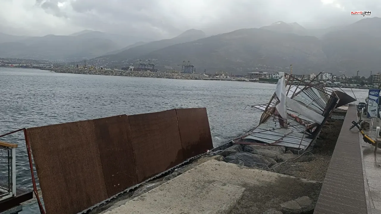 Meteoroloji’nin fırtına ve sağanak uyarısının ardından kent genelinde rüzgâr hızının yükseldiği bildirildi. Özellikle kıyı şeridinde dalga boyunun artmasıyla birlikte sahil hattında olumsuzluklar yaşandı. İskenderun sahilinde Ramazan ayı için kurulan çadırlar da fırtınadan nasibini aldı.