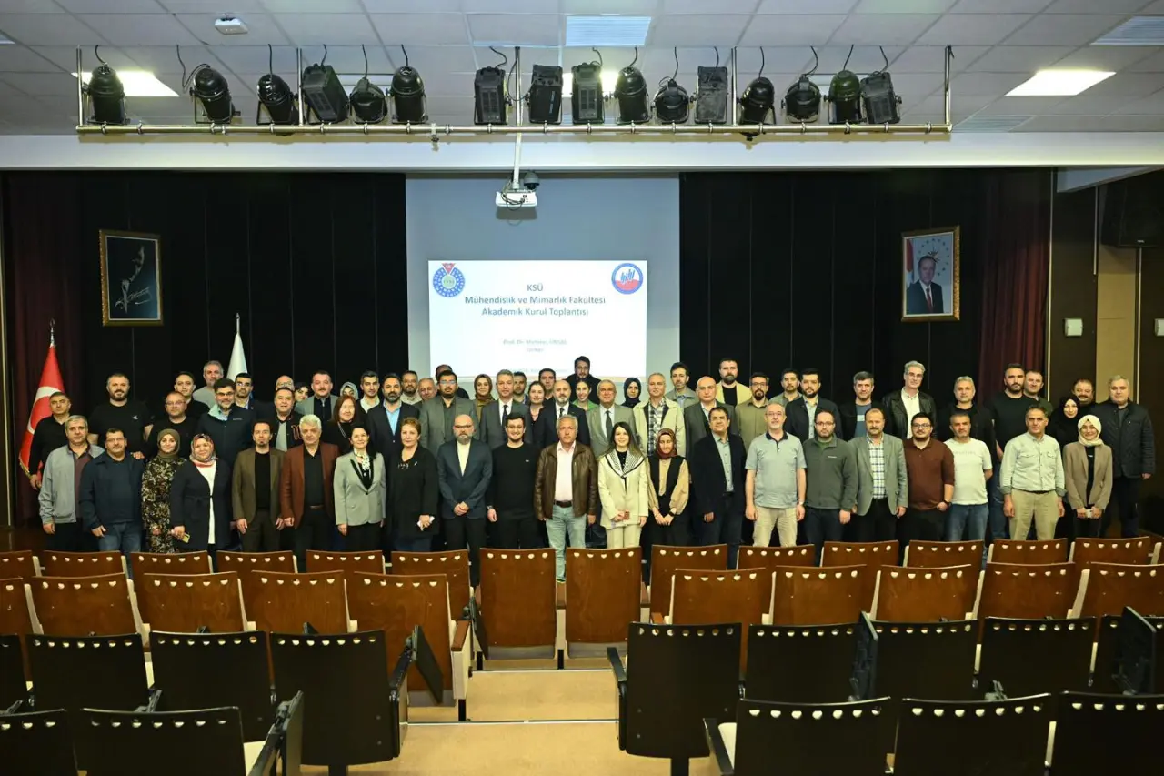 Kahramanmaraş Sütçü İmam Üniversitesi Mühendislik ve Mimarlık Fakültesi Akademik Kurul Toplantısı, KSÜ Rektörü Prof. Dr. İbrahim Taner Okumuş’un katılımıyla Cahit Zarifoğlu Konferans Salonu’nda gerçekleştirildi.