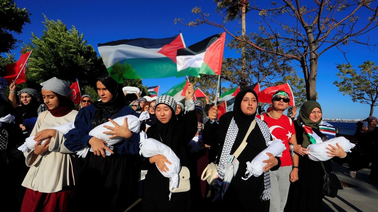Antalya Kudüs Platformu’nun çağrısıyla gerçekleşen yürüyüşte, katılımcılar ellerinde Türkiye ve Filistin bayrakları taşıdı. Konyaaltı Olbia Meydanı’nda başlayan yürüyüş boyunca ellerinde Gazze’de hayatını kaybeden bebek ve çocukları temsil eden kefene sarılmış bebek figürleri bulunan grup üyeleri, “Antalya’dan Gazze’ye direnişe bin selam” ve “Çocuklar ölürken sessiz kalınmaz” sloganları attı. Yaklaşık 2 kilometrelik yürüyüş boyunca çevredeki vatandaşlar da etkinliğe destek verdi.
