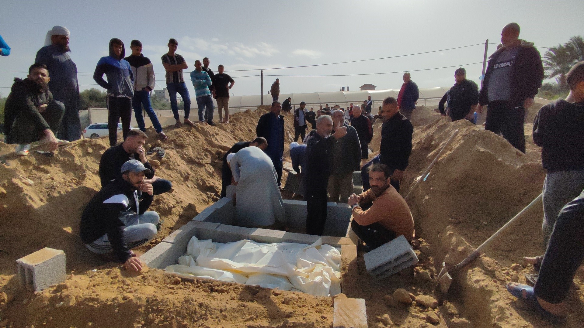 İsrail’in Gazze Şeridi’ne yönelik saldırıları devam ederken, bilanço her geçen gün ağırlaşıyor. Gazze Şeridi’ndeki Filistinliler bir yandan hayatta kalmaya çalışırken bir yandan da kaybettikleri yakınlarını toplu mezar kazarak defnediyor. Onlarca Filistinli bugün, İsrail saldırılarında kaybettikleri yakınları için Maghazi ve Bureij mülteci kampları arasındaki bölgede cenaze töreni düzenledi. Törendekiler gözyaşlarına hakim olamazken, cenazeler kazılan toplu mezarda yan yana defnedildi.