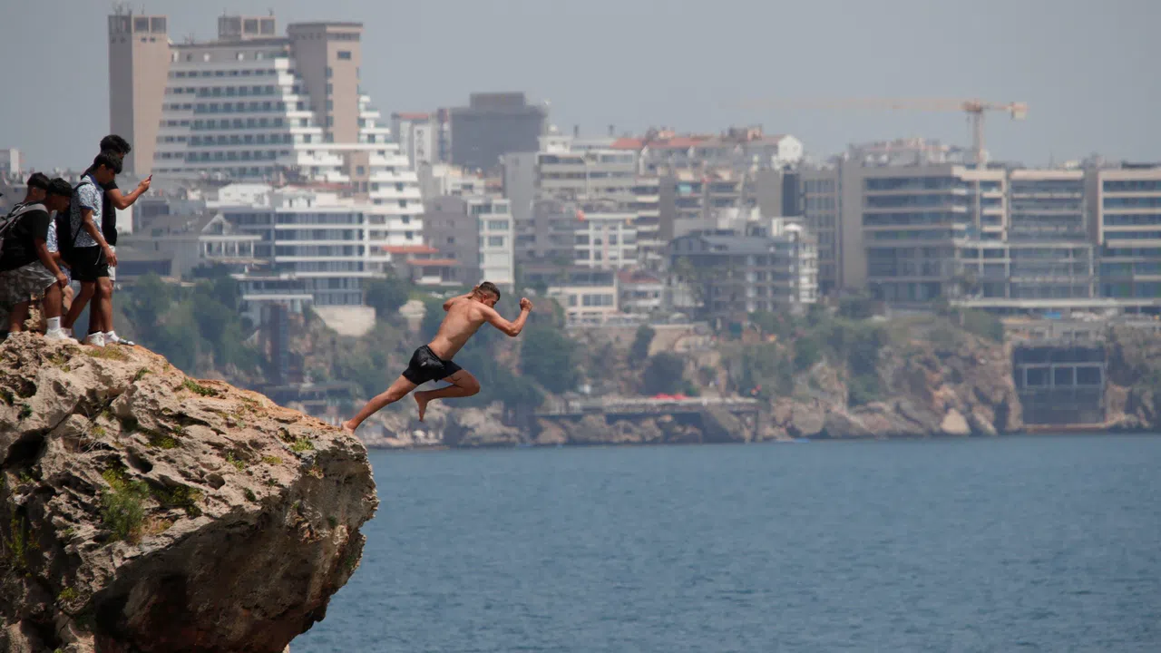 Bazı gençler 5 metrelik kayalıklardan atladı. Ancak bir kişi 30 metrelik zirveye çıktı. Sahildeki insanlar şaşkınlık içinde izledi. Genç, kendini boşluğa bıraktı. O anlar kameraya yansıdı.