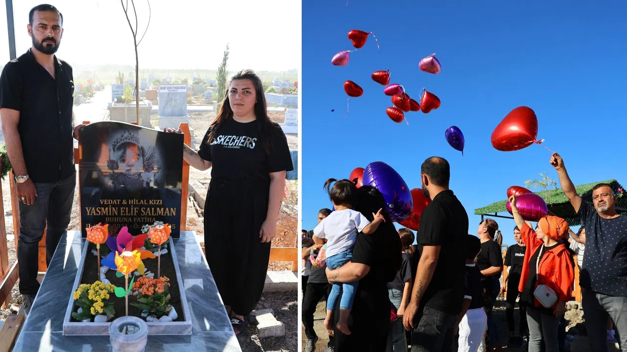 Yasmin Elif’in annesi, babası, kız kardeşi ve akrabaları, küçük kızı kabri başında andı. Önce dua okuyan aile, ardından gökyüzüne 2 düzine balon bıraktı. Acılı aile, “Yasmin Elif hep 4 yaşında kalacak” dedi.