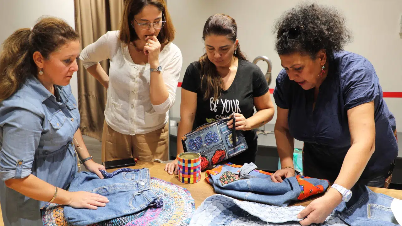 Atölye boyunca katılımcılar, kullanılmayan eski kot pantolon parçalarını değerlendirerek günlük yaşamda kullanılabilecek çantalar tasarladı. Eğitmenler eşliğinde gerçekleştirilen uygulamalı eğitimde, ileri dönüşümün hem çevreyi korumaya hem de aile ekonomisine katkı sağlayan yönleri detaylı biçimde anlatıldı. Katılımcılar, kendi elleriyle ürettikleri yeni ürünleri atölye sonunda teslim aldı.