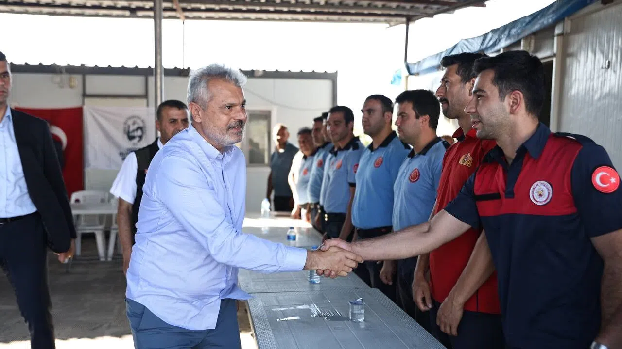 Antakya ilçesi Karaali Mahallesi'nde ormanlık alanda çıkan yangın kısa sürede büyüyerek geniş bir alana yayılmıştı. Yangın, havadan ve karadan müdahaleyle yaklaşık 36 saat süren çalışmalarla söndürülmüştü. Alevlerle mücadelede ilk andan itibaren sahada olan Hatay Büyükşehir Belediyesi itfaiye personeli çalışma azmi ve emekleriyle takdir topladı. Yangınla gece gündüz demeden kararlı bir şekilde mücadele eden ekiplerle bir araya gelen Başkan Öntürk, yangının kontrol altına alınmasında emeği geçen tüm personele gösterdikleri cesaret ve fedakârlık için teşekkürlerini iletti. Başkan Öntürk, orman yangınına karşı destansı mücadeleye veren personellere geçmiş olsun dileklerini ileterek personelleri tek tek tebrik etti.