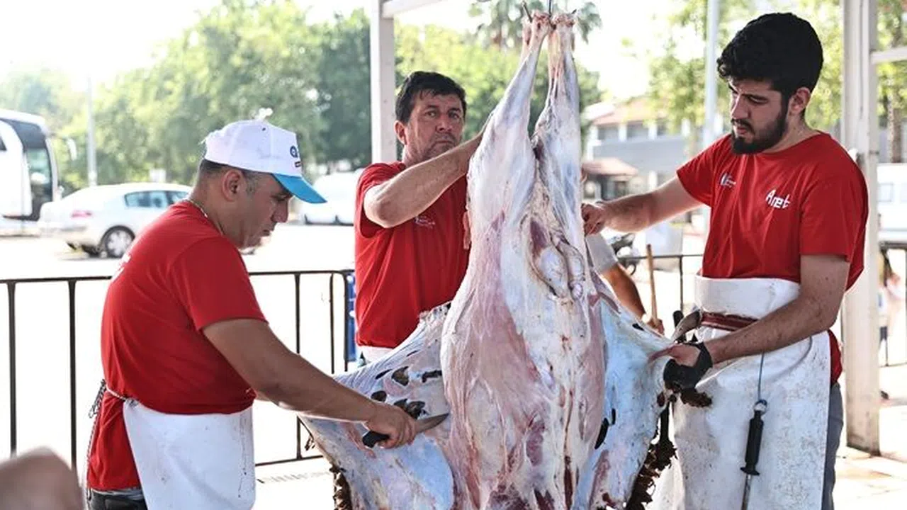 Antalya Büyükşehir Belediyesi Tarımsal Hizmetler Dairesi Başkanlığı’na bağlı veteriner hekimlerin denetiminde yürütülen kesim işlemleri, sıcak hava şartları da göz önünde bulundurularak hızlı ve temiz bir şekilde gerçekleştiriliyor. Antalyalılar, ücretsiz ve hijyenik ortamda sunulan bu hizmet için Büyükşehir Belediye Başkanı Muhittin Böcek ve belediye ekiplerine teşekkür etti.