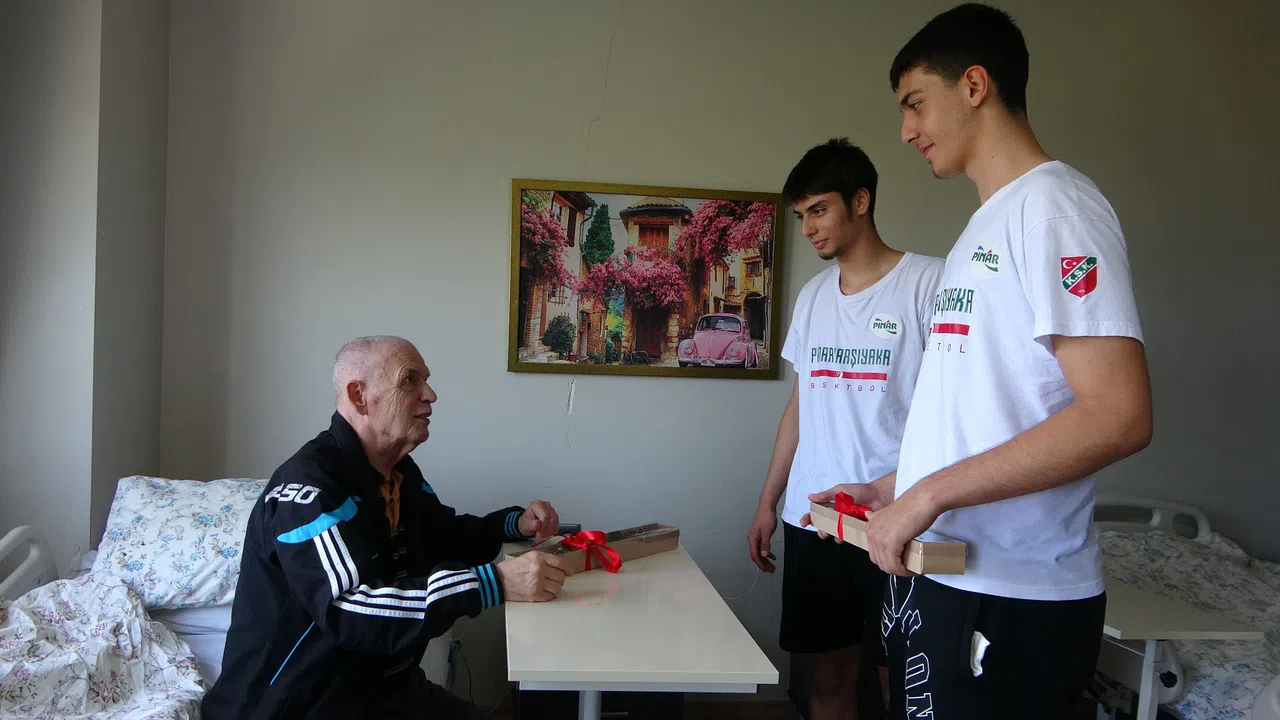 Yaşanan gelişmelerden haberdar olan Karşıyaka U18 takımının teknik heyet ve sporcuları, yaşlı bakım merkezine moral ziyareti gerçekleştirdi. Bir araya geldikleri yaşlılara gül ve çeşitli hediyeler veren genç sporcular, Haklima Şahin’e de özel olarak desteklerini iletti.