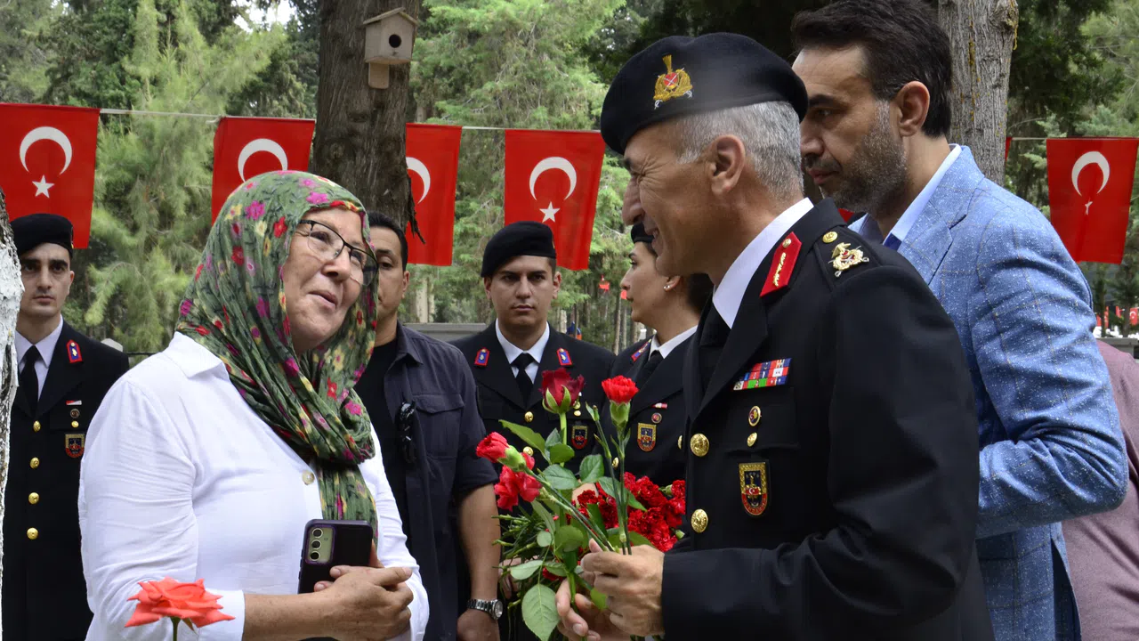 Toroslar ilçesi Akbelen Mahallesi'nde bulunan Mersin Şehir Mezarlığı'ndaki şehitlikte gerçekleştirilen törene, İl Jandarma Komutanı Tuğgeneral Ercan Atasoy'un yanı sıra şehit aileleri, gaziler ve kent protokolü katıldı. Törende Kur'an-ı Kerim okunarak şehitler için dualar edildi. Ardından protokol üyeleri, şehit mezarlarına gül bıraktı. Ziyaret sırasında duygulu anlar yaşanırken, Tuğgeneral Atasoy, gaziler ve protokol üyeleri, şehit aileleriyle tek tek selamlaşarak başsağlığı dileklerini iletti.