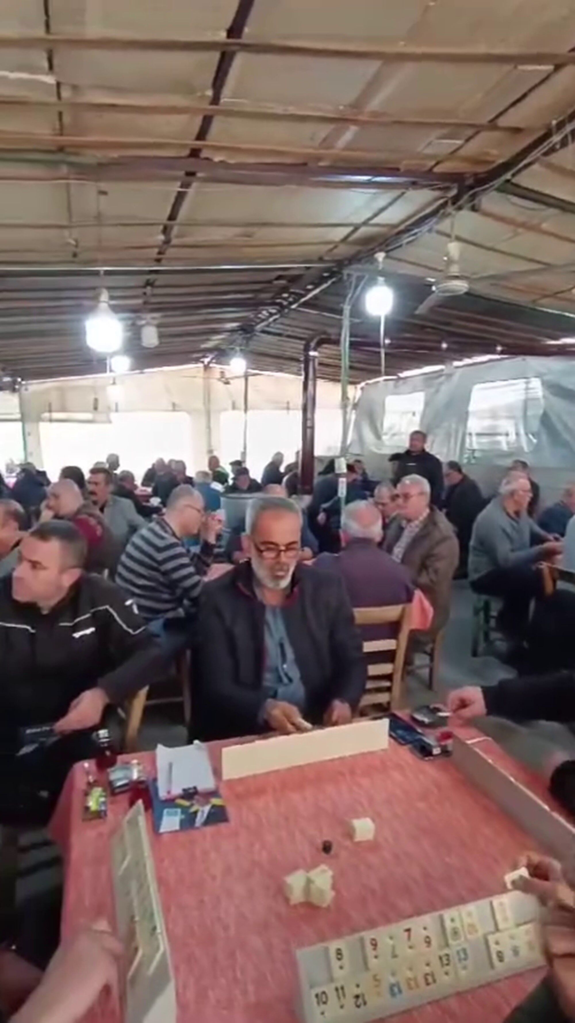 Hatay’ın Dötyol ilçesinde belediye başkan adayı Cihan Tufan’ın seçim çalışmaları esnasında bir kahvehanede vatandaşların konuşmaya aldırış etmeden oyun oynamaya...
