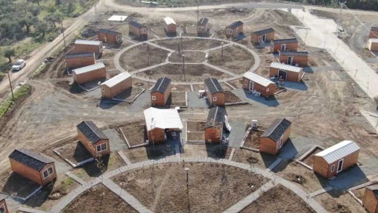 Kahramanmaraş merkezli depremlerden etkilenen Hatay’da depremin yaraları sarılmaya devam ediyor. Hatay Büyükşehir Belediyesi ve hayırsever vatandaşların iş birliğinde Kuzeytepe Mahallesi’nde depremzedeler için 66 dönüm arazide 100 ahşap evden oluşan ‘Örnek Evler Yaşam Merkezi’ kuruldu. Yuvarlak bir görünümle tasarlanan yaşam merkezi, 100 ev ve 30 sosyal alandan oluşuyor. Geçici yaşam merkezinde yapımı tamamlanan ahşap evler, 100 depremzede aileye teslim edildi. Evlerin dağıtımında öncelikli; eşini kaybetmiş çocuklu ailelere, hamile veya yeni doğum yapan ailelere, yaşlılara, engellilere verildi.