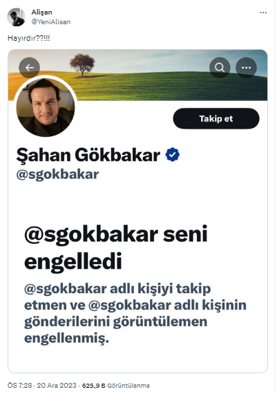 Ünlü şarkıcı Alişan, sosyal medya hesabından yaptığı paylaşımla komedyen Şahan Gökbakar'ın kendisini engellediğini duyurdu. Olay, Alişan'ın şaşkın bir şekilde "Hayırdır?!" ifadesiyle paylaştığı ekran görüntüsüyle daha da ilginç bir hal aldı. Sosyal medya kullanıcıları arasında hızla yayılan bu durum, gündemde büyük bir yer edindi.
