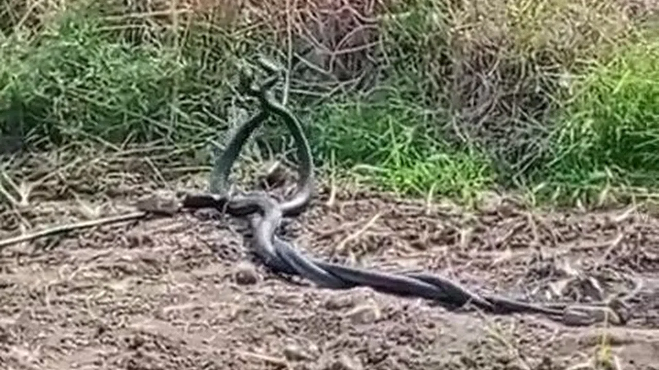 Hatay'ın Dörtyol ilçesinde boş arazide 2 yılanın çiftleşme dansı vatandaş tarafından kamerayla kaydedildi.
