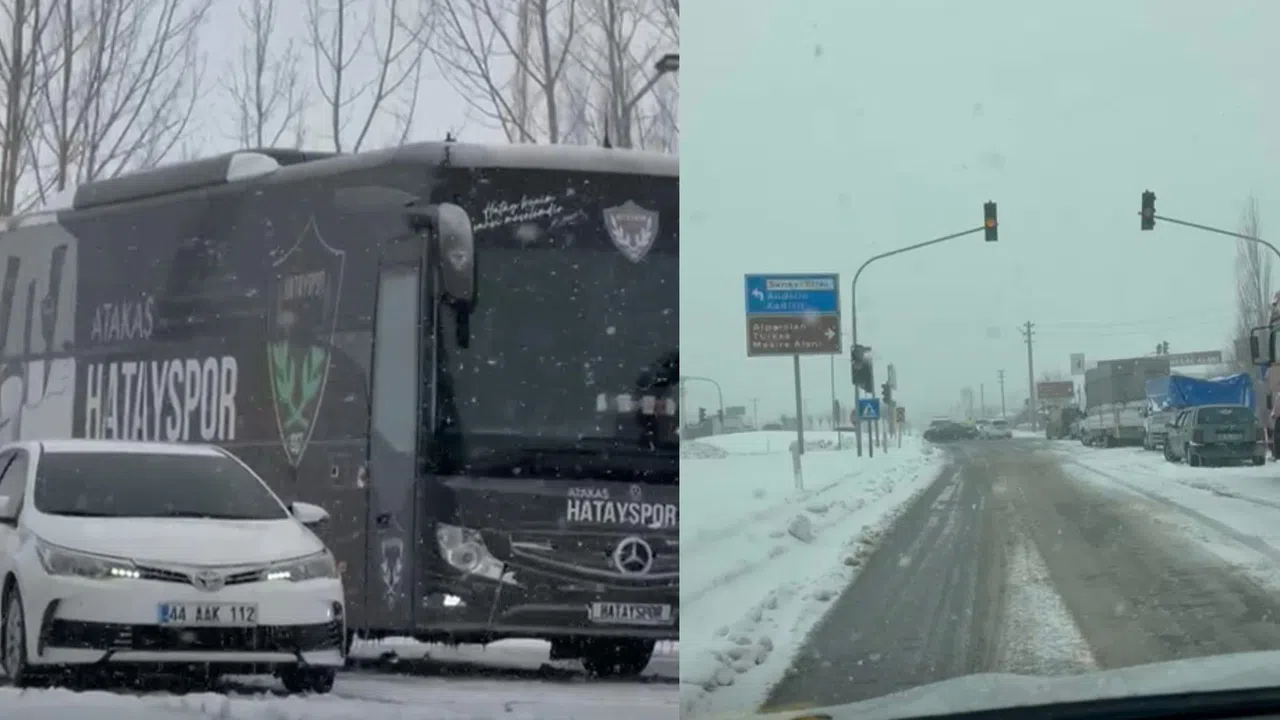 Yoğun kar yağışı nedeniyle Hatayspor takım otobüsü de Göksun’da mahsur kaldı. Yetkililer, yolların açılması için kar küreme ve tuzlama çalışmalarının sürdüğünü belirtirken, sürücülere zorunlu olmadıkça yola çıkmamaları konusunda uyarılarda bulundu.