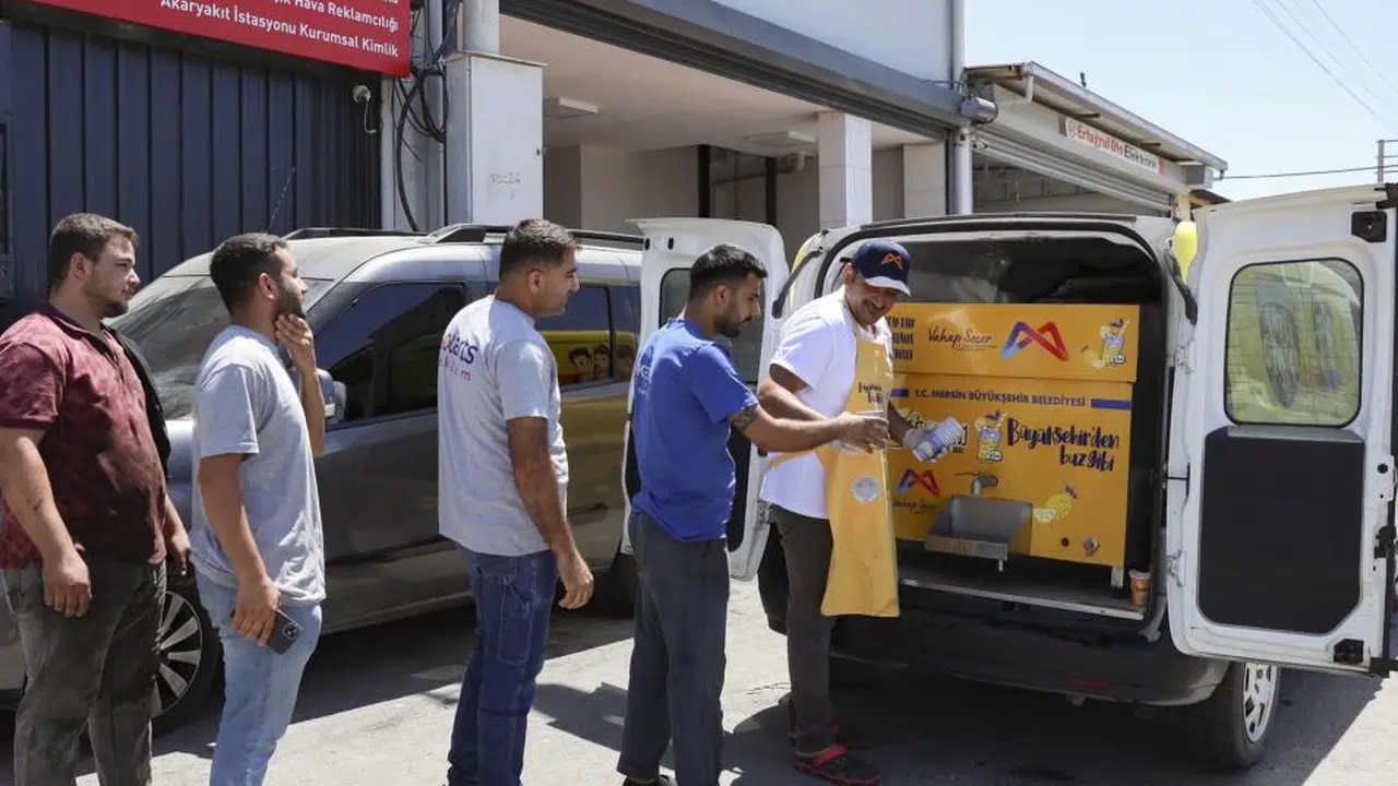 - Sosyal Hizmetler Dairesi Başkanlığı koordinesinde haftanın 4 günü kentin farklı noktalarında dağıtım yapan ekipler, özellikle sanayi siteleri ve hal kompleksleri gibi yoğun emek gücünün harcandığı bölgelerde görev yapıyor. Limonata ikramının bu haftaki durağında, kentin en yoğun çalışma noktalarından biri olan Mersin Toptancı Meyve ve Sebze Hal Kompleksi ile Mersin Sanayi Sitesi yer aldı.