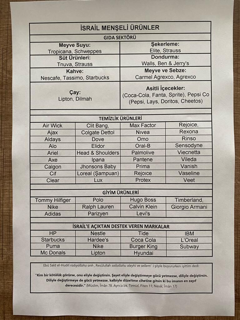 İsrail'in Filistin'in Gazze Şeridinde sivillere yönelik saldırıları, dünya genelinde büyük tepkilere yol açtı. İsrailin Gazze'de yaptığı vahşet, İslam dünyasında ve vicdan sahibi dünya halklarında öfkeye ve protestolara neden olurken, birçok vatandaşımızda da İsrail ürünlerini ve markalarını boykot etme istedi uyandırdı. İsrail'e yönelik öfke, boykot kampanyalarıyla beraber tüketicilerin İsrail menşeili ürünlerden ve markalardan da uzak durmasına sebep oldu