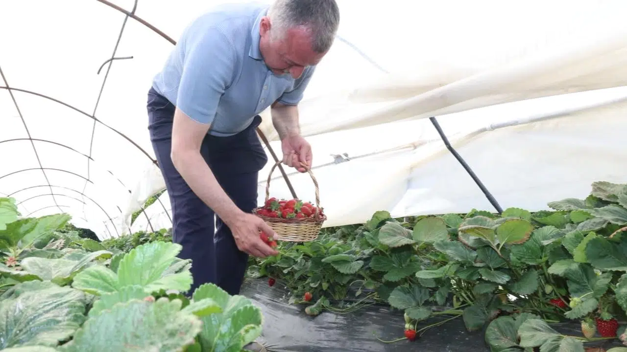 Kocaeli Büyükşehir Belediye Başkanı Doç.Dr.Tahir Büyükakın, Karamürsel Akçat Mahallesi’nde çilek hasadına katıldı.