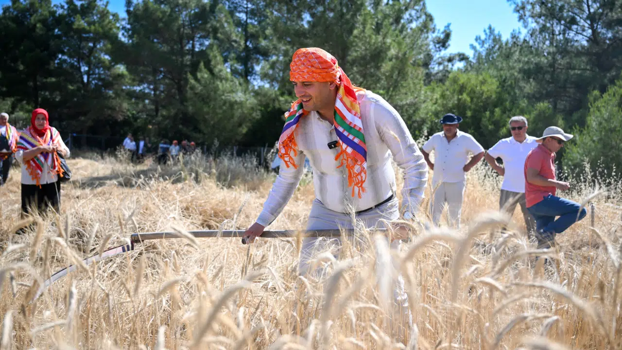 Traktörün direksiyonuna muhtarlar ve üreticilerle birlikte geçerek hasadı başlatan Bornova Belediye Başkanı Ömer Eşki, arazide yaptığı konuşmada, “İnsanoğlunun en büyük devrimi tarımı icat etmesidir; yerleşik düzenin ve beslenmenin temeli budur. Bunu geri kalmışlık değil, temel ihtiyacımız olarak görüyoruz. Yaklaşık 5 ton, belki daha fazla buğdayı tavuk üreticilerimize dağıtarak kırsal mahallelerimizde tarımın yeniden güçlenmesi için üzerimize düşeni yapıyoruz. Emeği geçen Tarım Müdürlüğümüze, muhtarlarımıza ve kırsal mahallelerimizi ‘köye’ dönüştüren meclis üyelerimize teşekkür ediyorum. Bornova Belediyesi olarak tarımsal yaşantıyı kendi gücümüzle desteklemeyi sürdüreceğiz.” dedi.