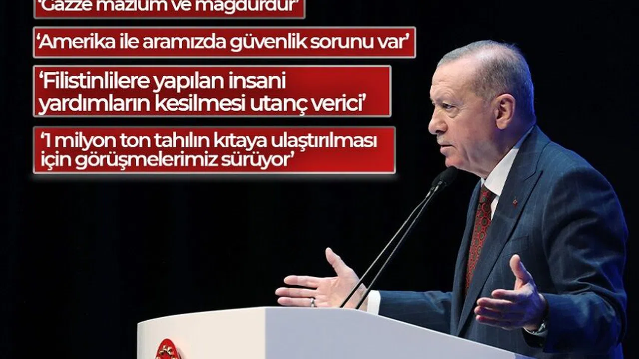 Tüm tarafları akli selim hareket ederek önce ateşkesi sonra kalıcı barışı görüşmeye çağıran Cumhurbaşkanı Erdoğan, “Gerek şahsım gerek Dışişleri Bakanım ki şu anda Mısır’a yolda gidiyor. Gerekse MİT Başkanım, rehinelerin salıverilmesi başta olmak üzere krize çıkış yolu bulabilmek için temaslarımızı yoğun bir şekilde sürdürüyoruz. Ancak kimi aktörlerin sükuneti tesis etme yerine ateşe benzin döken provokatif tavırları hem bizim çabalarımızı sekteye uğratmakta hem de krizi derinleştirmektedir. Gazze şu an itibariyle mazlumdur, mağdurdur. Ama İsrail’in öyle bir mazlum durumu söz konusu değildir. Tabi NATO’da beraber olduğumuz Amerika Birleşik Devletleri’nin bölgeye uçak gemilerini göndermesi maalesef barışa, sükunete, diyaloğa, diplomasiye ve taraflar arasında tansiyonun düşürülmesine hiçbir katkı sağlamıyor. Şimdi çok daha önemlisi Amerika’nın Dışişleri Bakanı, benim Dışişleri Bakanım ile görüşme yapıyor. ’İsrail’e Dışişleri Bakanı sıfatıyla değil bir Yahudi sıfatıyla yaklaşıyorum’ diyor. Bu nasıl bir politikacı, bu nasıl bir yaklaşım? Bunu söylediğin zaman sana karşındakiler de şunu söylerse. Ben de bölgeye bir Müslüman sıfatıyla yaklaşıyorum derse ne diyeceksin? Yahudi öbür tarafta Türk şu bu demiyoruz. Ya karşındakine insan sıfatıyla yaklaşacaksın. Çocukların halini görmüyor musun, o şehit edilen halini görmüyor musun, annelerinin babalarının ne hale geldiğini görmüyor musun? Ben seninle dışişleri bakanı sıfatıyla değil bir Yahudi olarak konuşuyorum diyor. Biz bugüne kadar hiç böyle yaklaşmadık. Ülkemdeki İsrail Büyükelçilikleri her türlü koruma altına aldık. Çünkü bu tür dönemlerde her şey olabilir. Biz ülkemizdeki bizim güvencimiz altında olması gerekir diyerek güvence altında tuttuk” diye konuştu.