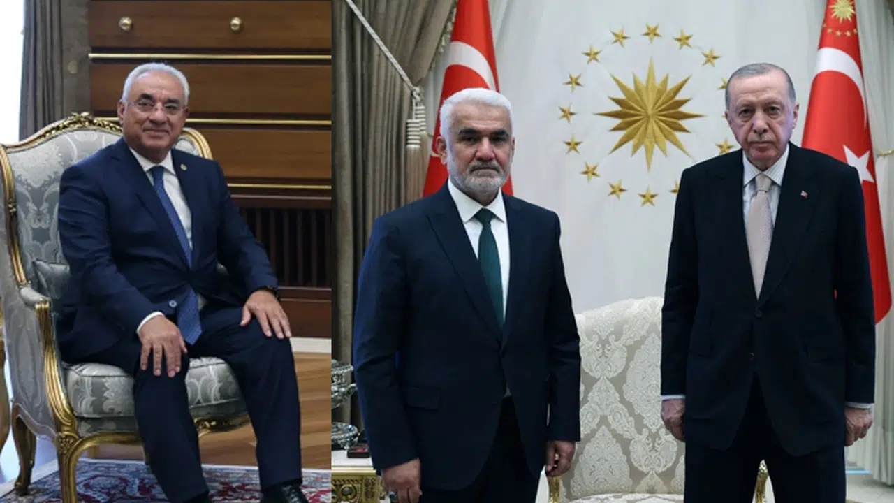 İletişim Başkanlığı'ndan aktarılan habere göre ilk olarak Demokratik Sol Parti (DSP) Genel Başkanı Önder Aksakal’ı kabul eden Cumhurbaşkanı Erdoğan, ardından Hür Dava Partisi (HÜDA PAR) Genel Başkanı Zekeriya Yapıcıoğlu ile görüştü.