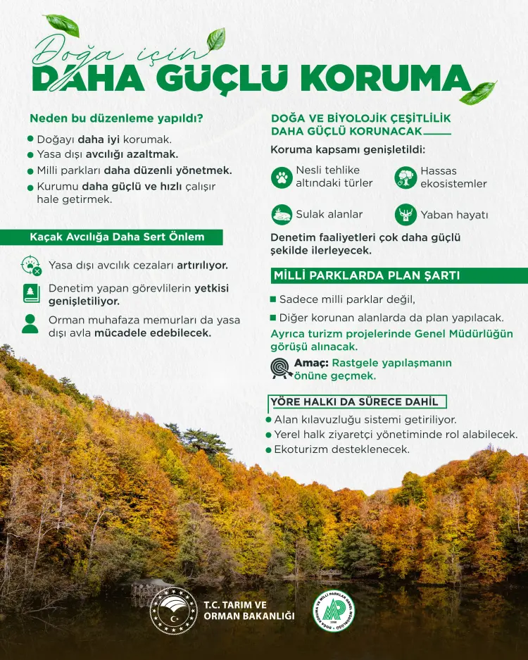 Yeni düzenlemeyle Doğa Koruma ve Milli Parklar Genel Müdürlüğü'nün yetki ve sorumlulukları önemli ölçüde artırıldı.