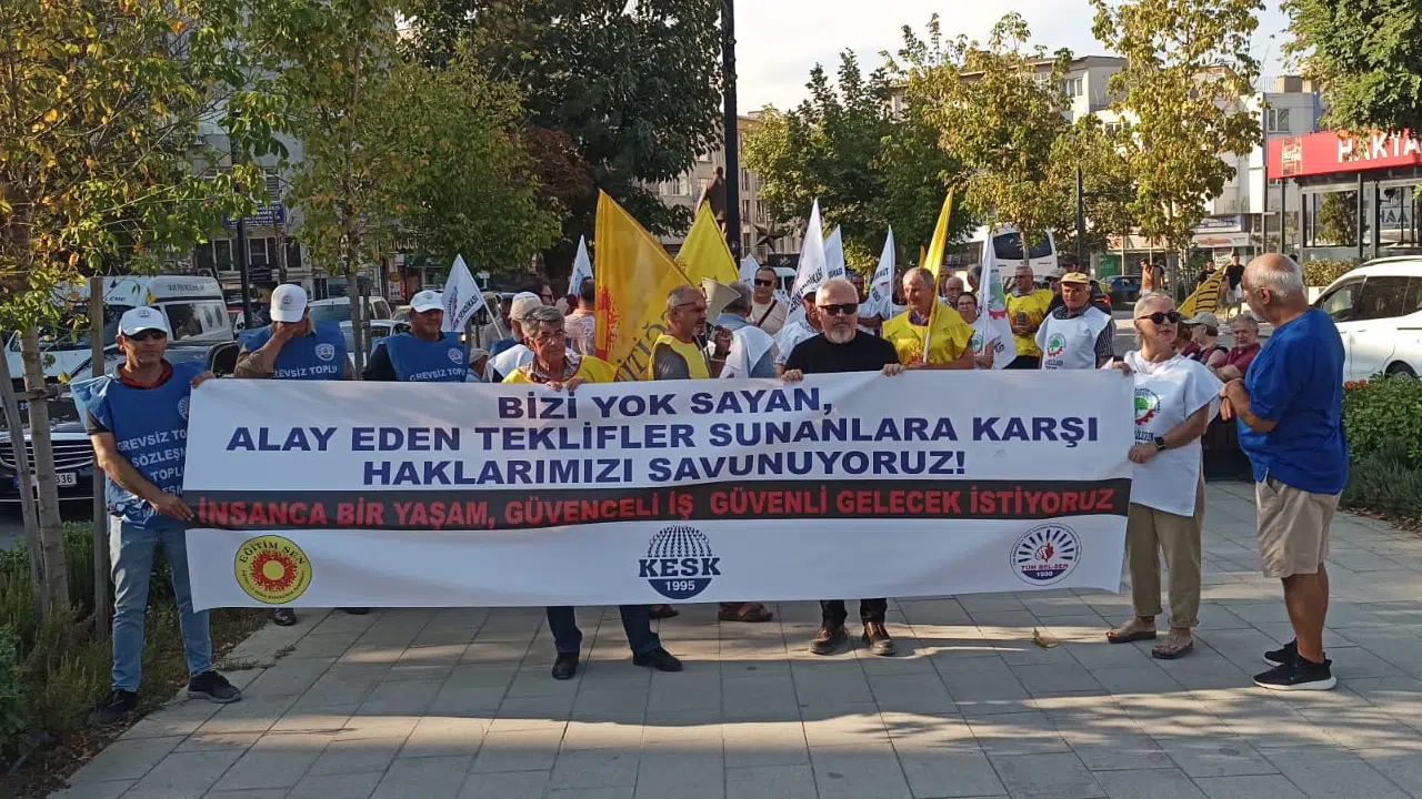 Eylemde, hükümetin kamu emekçileri ve emeklilere yönelik toplu sözleşme teklifine karşı grev kararı alındı.İlk olarak söz alan Keşan Tüm Emekliler Sendikası Temsilcisi Ahmet Erkan, Türkiye’de 5,5 milyon kamu çalışanı ve 11 milyon emeklinin ekonomik zorluklarla boğuştuğunu vurguladı. Erkan, “Ülkeyi 23 yıldır yöneten iktidar, 12 trilyonluk devasa bütçelerle övünüyor ama kamu çalışanlarına ve emeklilere sadaka gibi zamlar reva görülüyor. Biz bunu kabul etmiyoruz. İnsanca yaşamak için örgütlenmeli, yan yana gelmeliyiz. Yaşasın örgütlü mücadelemiz!” dedi.