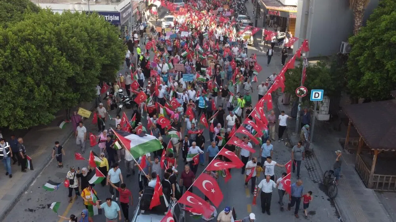 Ülke genelinde olduğu gibi Mersin'de de İsrail'in Filistin'e yönelik gerçekleştirdiği katliamlar tepki görmeye devam ediyor. Erdemli'de sivil toplum kuruluşları başta olmak üzere vatandaşlar bir araya gelerek İsrail'e tepki gösterdi. Saim Göküş Parkı'nda toplanan kalabalık, ellerinde Filistin ve Türk bayraklarıyla yürüdü. 7'den 70'e çok sayıda vatandaşın katıldığı yürüyüşte, sloganlar atıldı, dövizler taşındı. Cumhuriyet Meydanı'na kadar süren yürüyüşün ardından basın açıklaması gerçekleştirildi.