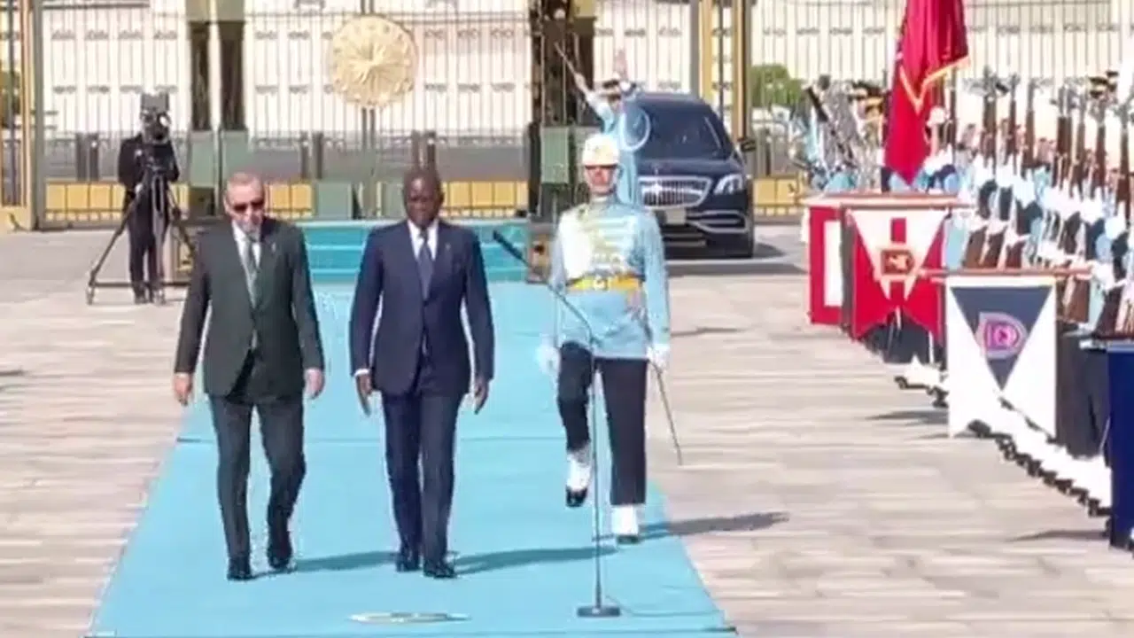 Gabon Cumhurbaşkanı Brice Clotaire Oligui Nguema, Türkiye’ye gerçekleştirdiği resmi ziyaret kapsamında Cumhurbaşkanlığı Külliyesi’nde resmi törenle karşılandı.