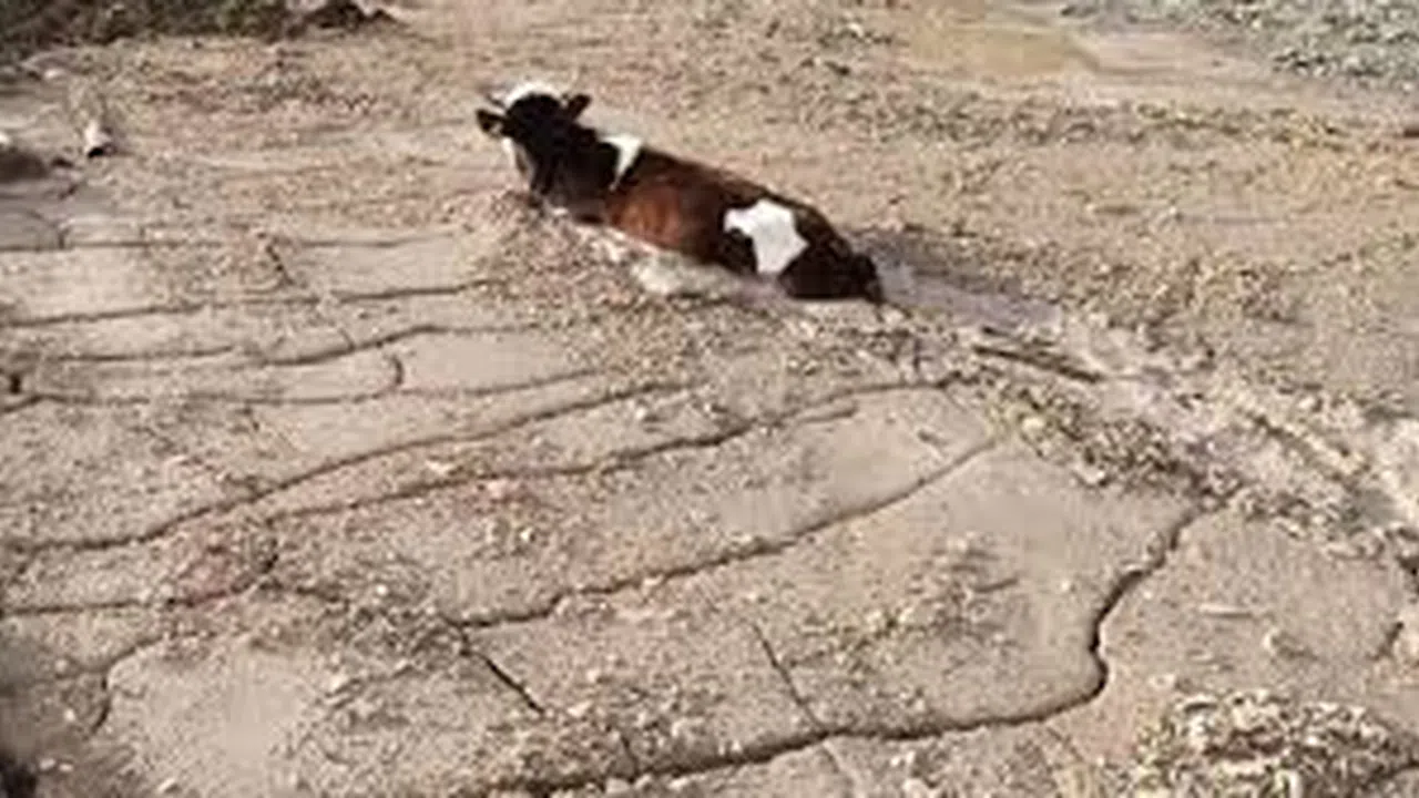 Kimyasal atıklı betona batan büyü)kbaş hayvanın vücudunda yanıkların oluştuğu iddia edildi.