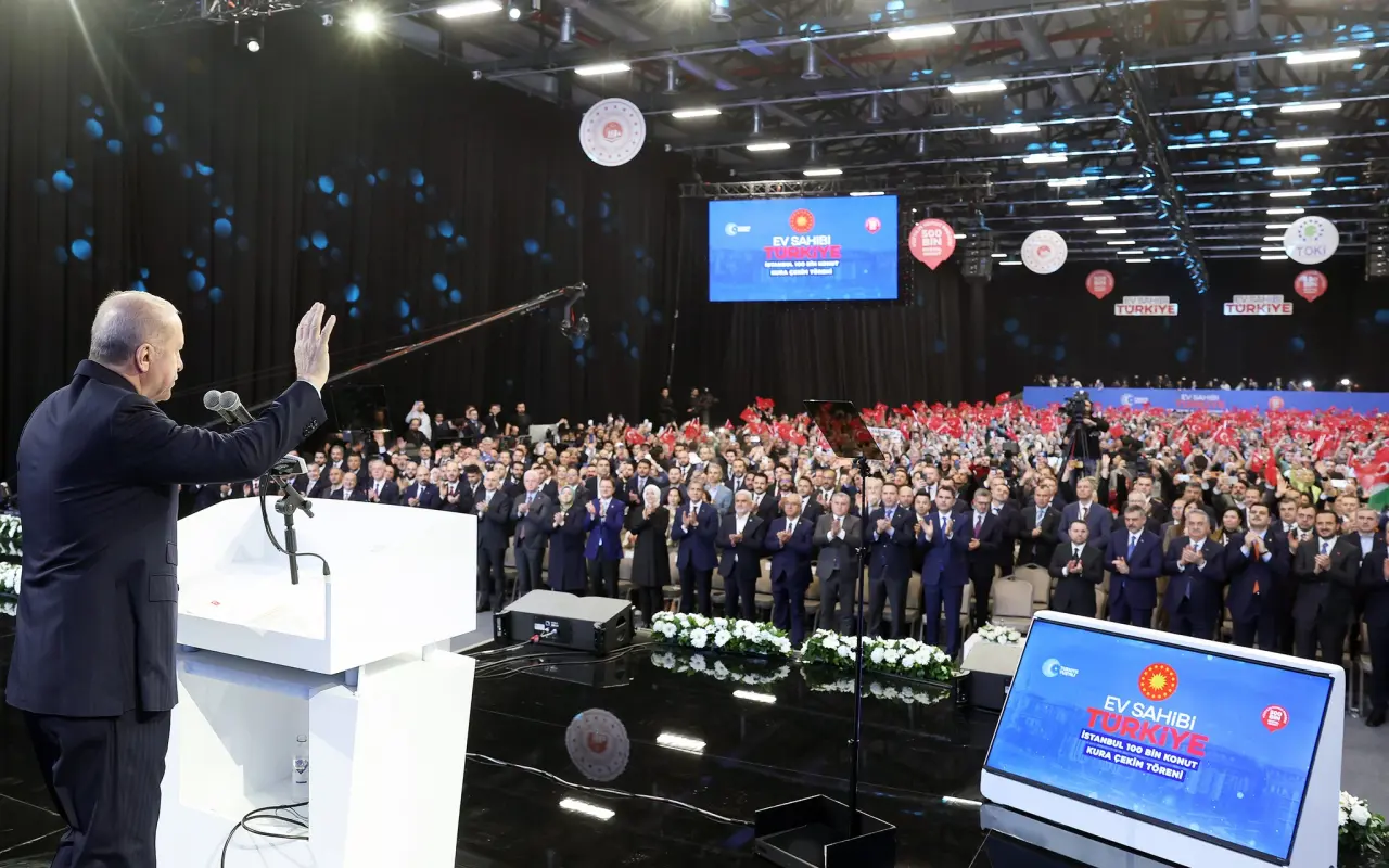 Cumhuriyet tarihinin en büyük sosyal konut hamlesi olarak nitelendirilen proje kapsamında, İstanbul’un farklı bölgelerinde inşa edilecek 100 bin konut için kura heyecanı yaşandı. Dar gelirli vatandaşların ev sahibi olmasını amaçlayan projede, İstanbul ayağı en büyük payı oluşturuyor. Cumhurbaşkanı Erdoğan, çekilen kuraların İstanbul için hayırlı olmasını dileyerek, devletin vatandaşın barınma ihtiyacı konusundaki kararlılığını bir kez daha vurguladı.