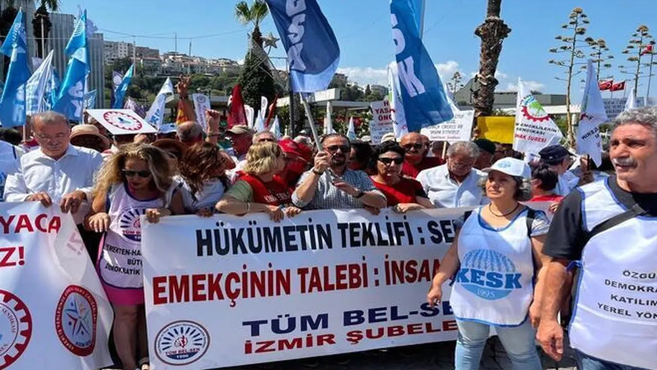 İzmir Konak’ta KESK ve bağlı sendikaların öncülüğünde düzenlenen bir günlük iş bırakma eylemi ve basın açıklamasına, DİSK Devrimci Emekliler Sendikası (Dev Emekli-Sen) da destek verdi.