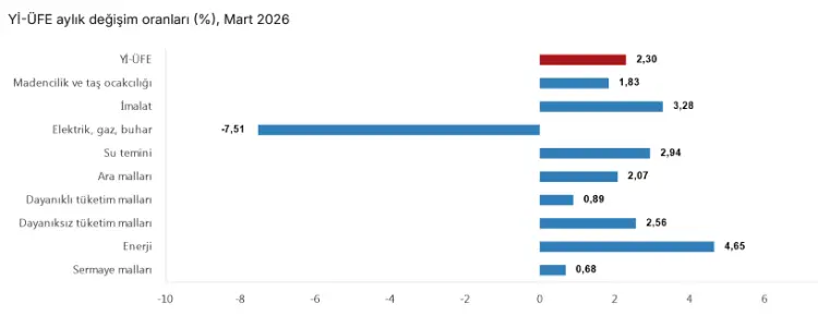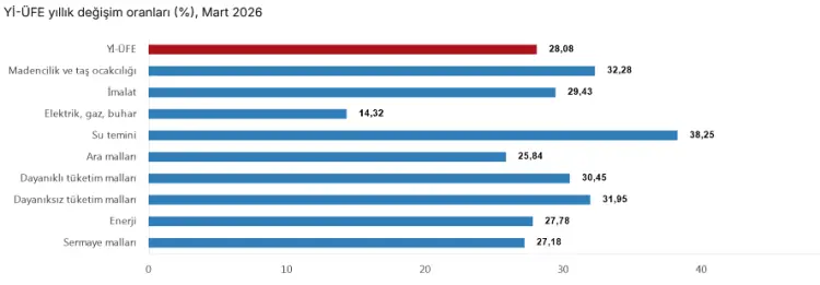 Türkiye İstatistik Kurumu'nun yayımladığı verilere göre, Yurt İçi Üretici Fiyat Endeksi (Yİ-ÜFE) 2026 yılı Mart ayında yükselişini sürdürdü.